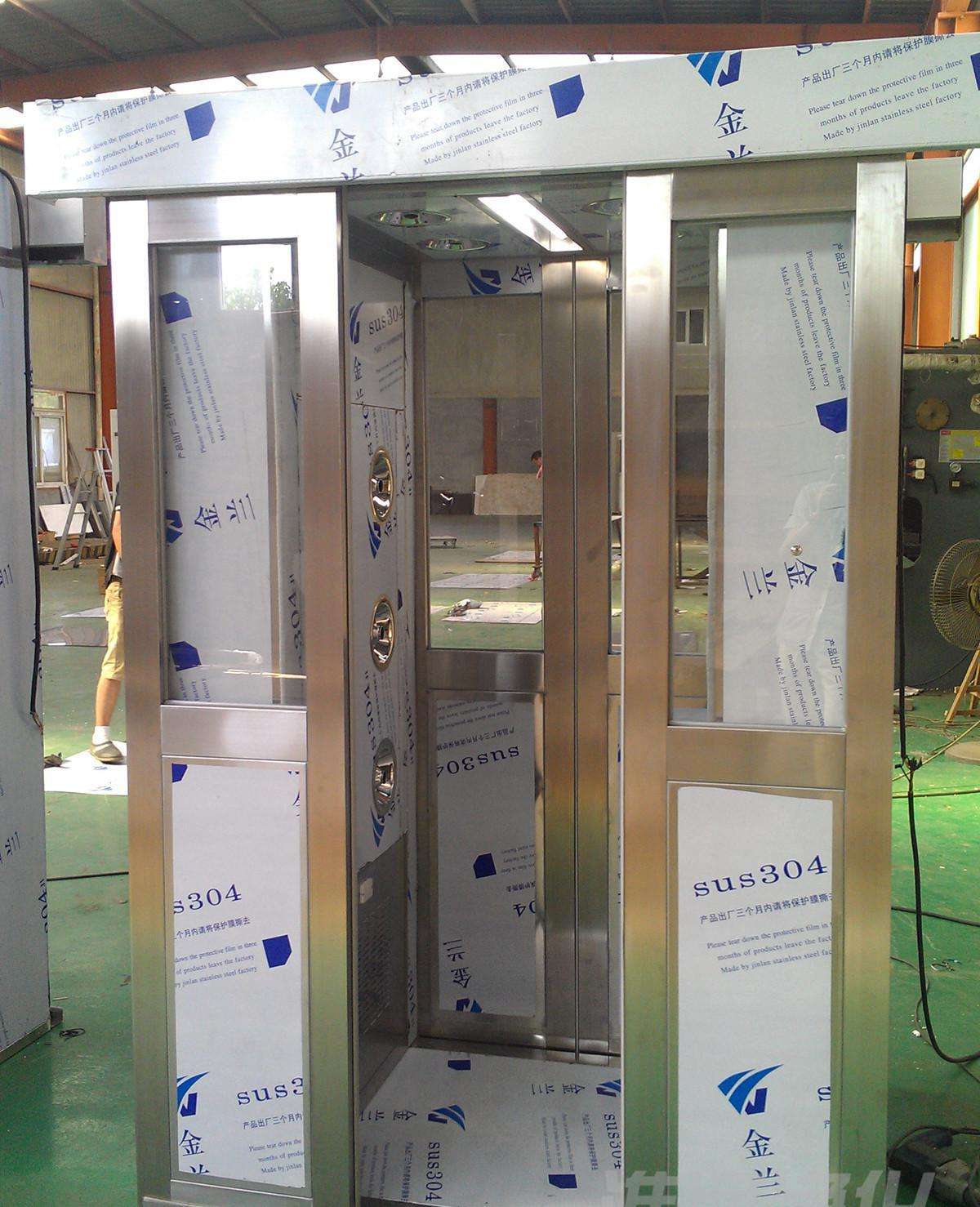 金彩汇廊坊风淋室厂家生产的风淋通道是洁净厂房和配套洁净室的配套设备,用于吹除进入洁净区域的人体和携带物表面附着尘埃,风淋通道同时起气闸作用,防止未经净化的空气进入洁净区域。是进行人体、物料净化和防止室外空气污染洁净区的有效设备,通用性强,可与所有洁净室和洁净厂房配套使用。风淋通道适合于大型净化面积的企业。风淋通道内的空气由风机的作用经初效过滤器进入静压箱,经高效空气过滤器过滤后,洁净空气从风淋室的喷嘴高速喷出,喷嘴角度可调节,可有效地吹除人特或携带物品表面附着的尘埃,吹下的尘埃再回收进入初效空气过滤器,如此循环可以达到风淋的目的。风淋室吹淋时间建议10-20秒。宁夏工业风淋室系列可量尺定做